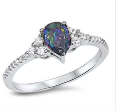 Gorgeous Sterling silver ring with three round cut Cz stones set with a Marquis cut Cz Emerald stone. This stunning silver ring is a perfect gift for that special person.